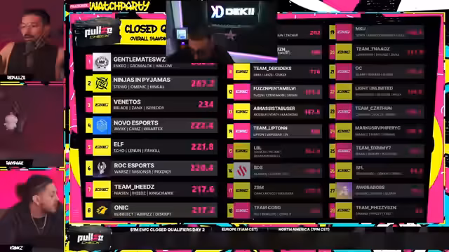 00:11:33Der Streamer äußert seine Frustration über das Enkio-Team, das er als unfaire Spieler bezeichnet. Er ist der Meinung, dass er sich mit ihnen messen muss, um weiterzukommen. Allerdings sieht er seine Teamgefährten in einer schwierigen Position, da Enkio schnell die beste Position im Spiel einnimmt. Die Rivalität und der Druck, dieses Team zu besiegen, sind offensichtlich ein zentrales Thema für das finale Turnier.