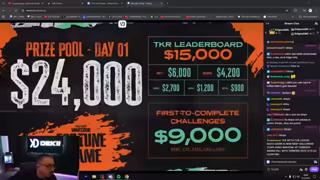08:33:13Der Stream wird mit einem Fokus auf das !Meta Warzone Turnier eröffnet, das ein Preisgeld von $120.000 ausweist. Dekki hebt die Partnerschaft mit SCUF hervor und deutet die Organisation des Turniers an. Anschließend wird eine unübersichtliche Diskussion über einen Mitspieler geführt, dessen Hintergründe und OnlyFans-Aktivitäten erwähnt werden, wobei der eigentliche Turnierkontext etwas in den Hintergrund rückt. Es folgen allgemeine Betrachtungen zur Spielercommunity und dem Spielverhalten, ohne konkrete Turnierdetails.