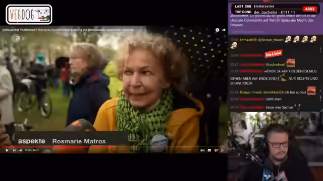 05:31:32Der Streamer stellt fest, dass Pazifismus in der aktuellen Gesellschaft schwer habe, da immer mehr extreme Meinungen aufeinander träfen und der Austausch fehle. Er kritisiert die kriegstreibende Politik, die von Motiven wie Rüstungsgeschäften und Vorteilsicherung getragen sei, während die Werte des freien Westens nach vorn gestellt würden. Die Frage aufgeworfen wird, ob falscher Pazifismus überhaupt existieren könne. Gleichzeitig wird ein Friedensmarsch in Berlin mit geringer Beteiligung kritisiert, der zu unkritisch gegenüber Russland sei und von Rentern dominiert werde.
