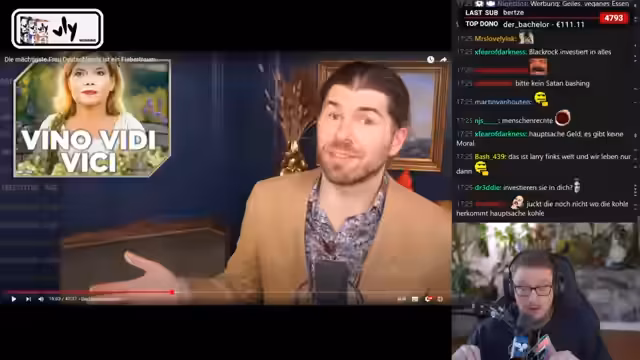 04:20:44Der Streamer spricht über die Entwicklung von YouTubern wie Thundercock und empfiehlt, ihnen Zeit der Reifung zu geben. Er erwähnt einen uralt Content von einem Minecraft-YouTuber namens Sky Guy und Forks. Später bezieht er sich auf ein ZDF-Video mit dem Titel 'Schluss mit Pazifismus', das sich mit der Veränderung der Bundeswehr beschäftigt und seine Aufmerksamkeit erregt hat. Diskutiert wird auch eine Reportage über Reservistinnen wie Carrie Hoppe, die aufgrund einer neuen Bedrohungslage gefragter sind.