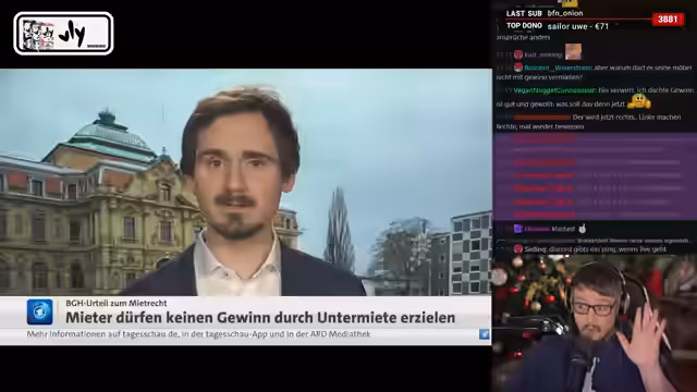 00:42:59Der Stream thematisiert ein Urteil des Bundesgerichtshofs (BGH), das Mieter verbietet, bei der Untervermietung ihrer Wohnung Gewinn zu erzielen. Es wird erklärt, dass Untermiete dem Mieter dienen soll, um bei Lebensveränderungen die Wohnung zu halten, nicht jedoch zur Bereicherung. Das Urteil schafft einen Interessensausgleich zwischen Mieter und Vermieter, um zu verhindern, dass der Mieter auf Kosten des Eigentümers profitiert. Dies führt zu Diskussionen über Kapitalismus, Eigentum und die Rolle von Gerichten in der Gesellschaft.