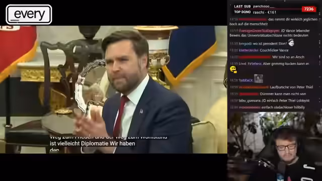 02:53:22Der Höhepunkt des Streams ist die heftige Auseinandersetzung zwischen US-Präsident Trump und dem ukrainischen Präsidenten Selenskyj. Trump wirft Selenskyj mangelnden Respekt, die Gefährdung des Weltfriedens und Undankbarkeit vor, während Selenskyj die US-Unterstützung als entscheidend für die ukrainische Verteidigung ansieht. Der Clip zeigt beispiellose öffentliche Demütigung und den Bruch zwischen den beiden Nationen.