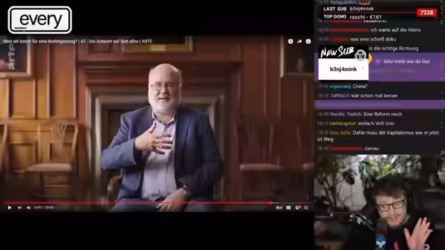 01:55:26Ein weiteres wichtiges Thema ist die Diskussion über eine mögliche Weltregierung, angeregt von einer Arte-Dokumentation. Die Überlegung zielt darauf ab, eine einzige, im Interesse der gesamten Menschheit handelnde Regierung zu schaffen, um globale Probleme wie Kriege und den Klimawandel zu lösen. Historische Denker wie Immanuel Kant und Thomas Hobbes werden zitiert, die ähnliche Konzepte einer Weltrepublik oder eines globalen Schiedsrichters vertraten, was die Idee als lang anhaltendes philosophisches Problem zeigt.