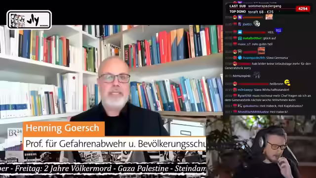 02:37:34Es wird ein Video des Bayerischen Rundfunks mit dem Titel 'Was passiert, wenn Deutschland im Krieg ist?' erwähnt. Die Sorge, dass Deutschland angegriffen wird, wird als weniger realistisch eingestuft als die Sorge, dass Deutschland angreift. Es wird die Frage aufgeworfen, ob Deutschland auf einen Verteidigungsfall vorbereitet ist, insbesondere in Bezug auf die zivile Verteidigung. Die Wehrpflicht würde im Verteidigungsfall automatisch reaktiviert werden und alle Männer zwischen 17 und 60 müssten sich entscheiden. Es wird kritisiert, dass die Entscheidung, ob man zivil verteidigt oder eine Waffe in die Hand nimmt, keine freie Entscheidung ist, da man sich nicht dafür entscheiden kann, nichts zu tun. Es wird ein Discord-Kanal mit dem Namen 'Ernstfall' eingerichtet, um im Falle eines Ernstfalls die Mitglieder zu informieren. Es wird spekuliert, dass es im Spannungsfall zu Anschlägen auf Truppen und Stromausfällen kommen könnte. Es wird die Absurdität der körperlichen Fitness im Angesicht moderner Kriegsführungstechnologien wie Drohnen in Frage gestellt.