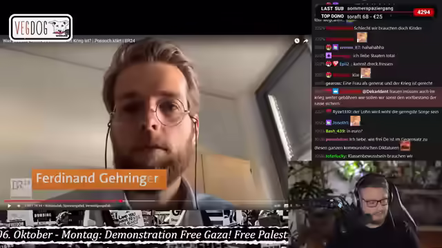 00:24:16Es wird ein vom Ministerium produziertes Propagandastück vorgestellt, das im Kampf gegen den Kapitalismus die Arbeiterklasse stärken soll. Es folgen politische Einordnungen, wobei die politische Position des Streamers als eher rechts eingeschätzt wird. Er äußert sich abwertend über Weiße, die nicht an Demonstrationen teilnehmen, und betont, dass man bei Diskussionen mit Rechten nichts entgegensetzen könne, da diese im Recht seien. Weiterhin werden Themen wie Postkolonialismus, der CEO von Blue Sky und dessen Verhalten gegenüber Trans-Personen angesprochen. Der Streamer distanziert sich von abwertenden Äußerungen über Weiße auf Pro-Palästina-Demos und betont, dass er sich über jene lustig macht, die nicht an Protesten teilnehmen. Er erklärt, dass es ihm egal sei, ob jemand den Begriff 'Karnacke' für sich beansprucht, Weiße diesen aber nicht abwertend benutzen sollten. Abschließend wird die Problematik diskutiert, dass Weiße zu Themen befragt werden, die eigentlich Betroffene betreffen, und die Schwierigkeit, in einer Einzelübertragung Betroffene einzubeziehen.