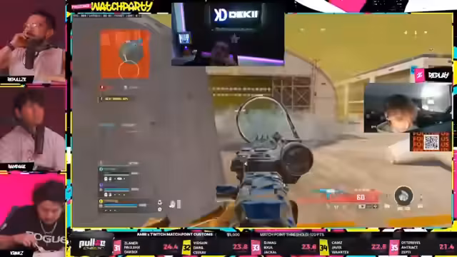 06:58:37Das Turnier steht kurz vor dem Ende, wobei ein Team bei 120 Punk ist und nur noch einen Sieg benötigt. Das Streamer-Team hat Disconnect-Probleme erlebt, die ihre Position im Turnier beeinflussen. Es kommt zu Diskussionen über die Reconnect-Strategie im Spiel. Der Streamer ist frustriert über denDisconnect, da sie damit möglicherweise bessere Platzierungen hätten erreichen können. Gleichzeitig macht er sich über andere Spieler lustig, die auf Matchpoint törichte Entscheidungen treffen.