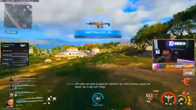 11:25:55Es wird über die unterschiedlichen Startzeiten des Spiels auf PC und Playstation diskutiert, wobei erwähnt wird, dass man auf PC ab 6 Uhr morgens und auf Playstation ab 0 Uhr spielen kann. Die Möglichkeit, durch das Beitreten zu einem Freund früher ins Spiel zu gelangen, wird angesprochen. Eine weitere Frage betrifft die Möglichkeit, zwei Waffen in den Loadout zu nehmen, und es wird erklärt, dass dafür der „Overkill“-Perk freigeschaltet werden muss. Der Streamer äußert den Wunsch, seine Waffe schnell auf Gold zu bringen und plant, dafür das Spiel kurz zu verlassen und wieder einzusteigen.