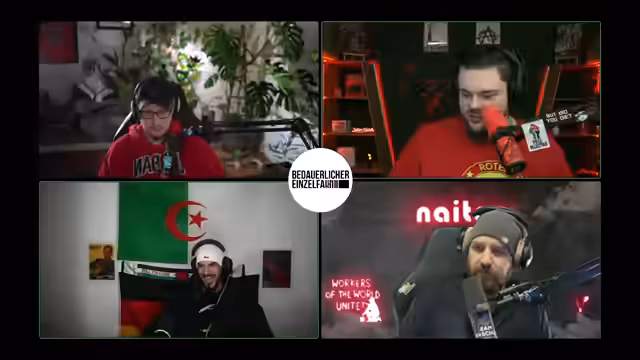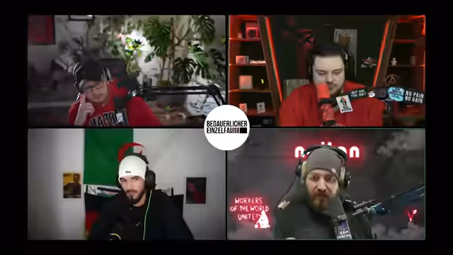 03:44:01Der Streamer greift die deutsche Außenpolitik scharf an, da die Flagge Israels an deutschen Rathäusern gehisst werde, während gleichzeitig ein Völkermord im Gazastreifen stattfinde. Als konkretes Beispiel für politische Heuchelei wird der Parteiausschluss von Ramzi Kelani bei der Partei Die Linke thematisiert. Kelani hatte den Angriff vom 7. Oktober positiv kommentiert. Dies wird im scharfen Kontrast zu den Kommentaren anderer Parteimitglieder gesehen, die die israelische Politik offen unterstützen und keine Konsequenzen fürchten müssen, was als doppelter Standard und als Problem der Partei identifiziert wird.