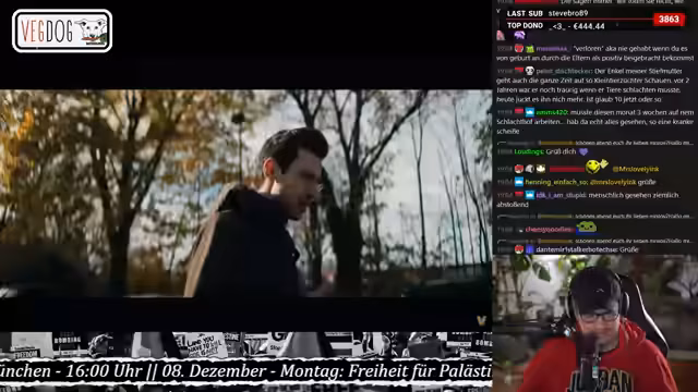 04:24:51Nach dem langen monologischen Teil verabschiedet sich der Streamer und bezeichnet den Beitrag der anderen Sprecher als "bedauerlichen Einzelfall", der sich wahrscheinlich wiederhole. Er kündigt seinen weiteren Abend an, der aus Zocken und Anime-Schauen besteht und lädt sein Publikum ein, bei anderen Formaten weiterzumachen. Der Stream endet mit einem finalen Spottgruß an seine Zuschauer, der sich gegen die israelische Politik und deren Unterstützer in Deutschland richtet.