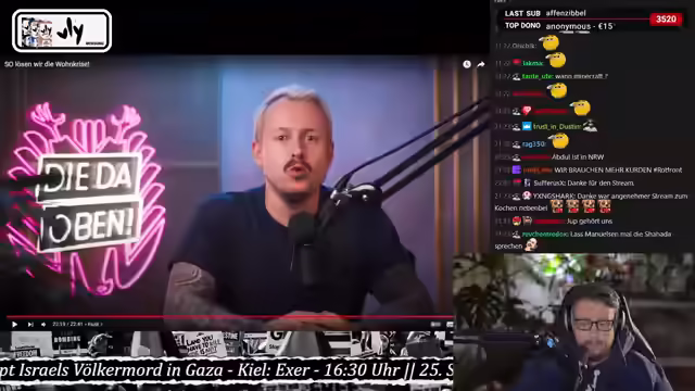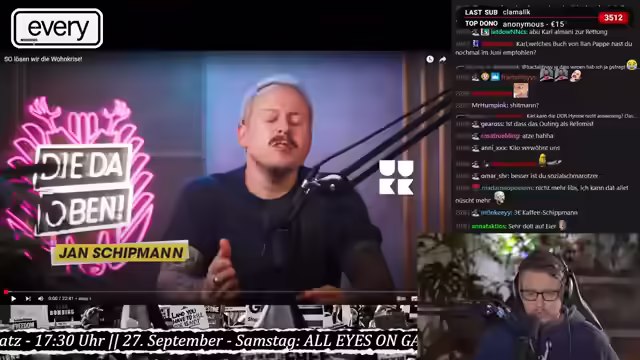 02:54:42Es wird angekündigt, das Video 'So lösen wir die Wohnkrise' mit Jan Schippmann anzusehen. Es wird ironisch kommentiert, dass Schippmann die Wohnkrise eigenhändig lösen würde und Sozialwohnungen bauen müsste. Es wird die Diskrepanz zwischen der Realität und den Aussagen von Politikern und Medien kritisiert, die von rollenden Baggern und der Lösung der Wohnkrise sprechen, während gleichzeitig hohe Militärausgaben getätigt werden. Die einfache Antwort auf die Frage, warum es eine Wohnkrise gibt, sei, dass Wohnen und Wohnraum eine Ware ist. Es wird die Bundesministerin für Wohnen, Stadtentwicklung und Bauwesen, Verena Hubertz, erwähnt und die Frage aufgeworfen, ob es überhaupt eine Lösung für das Problem gibt. Es wird ironisch angemerkt, dass 45 Quadratmeter für 500 Euro warm nur im letzten Loch in Zwickau zu finden seien. Die Realität sei eher, dass man für diesen Preis nur einen 13 Quadratmeter WG-Abstellraum bekommt. Es wird von hohen WG-Zimmerpreisen in Jena berichtet und die eigenen Erfahrungen mit hohen Mietpreisen in Berlin geschildert.