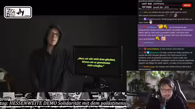 03:26:40Eine Kampagne, die eine Prüfung aller Parteien durch das Bundesverfassungsgericht fordert, die vom Verfassungsschutz als gesichert rechtsextrem oder rechtsextremer Verdachtsfall eingestuft wurden, wird kritisiert. Der Streamer sieht darin eine Abgabe der eigenen Ermächtigung und des Denkens an den Staat. Er argumentiert, dass die Konzentration auf eine 'Prüfung' anstelle eines direkten 'Verbots' zwar mehr Menschen überzeugen mag, aber letztlich eine staatshörige Haltung fördert. Die Forderung nach einer Prüfung wird als Versuch interpretiert, die Verantwortung für eine politische Entscheidung an staatliche Institutionen abzugeben, anstatt sich selbst mit den Inhalten auseinanderzusetzen und zu streiten. Es wird die Gefahr gesehen, dass eine solche Haltung zu einer totalitären Versessenheit auf staatliche Kontrolle führen könnte, bei der der Bürger seine eigene Urteilsfähigkeit und Handlungsbereitschaft aufgibt. Die Kampagne wird als ein 'Witz' bezeichnet, der die Ironie der Situation hervorhebt, dass man sich auf den Staat verlässt, um Probleme zu lösen, die man selbst angehen sollte.