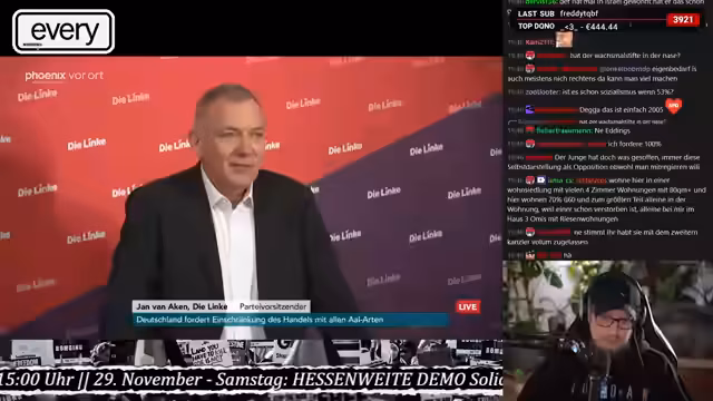 02:42:28Ein Zuschauer fragt nach Möglichkeiten, sich politisch zu engagieren, nachdem er durch Videos des Kanals ein besseres Verständnis für linke Standpunkte entwickelt hat, trotz geringer Schulbildung. Es wird betont, dass schulische Bildung keine Voraussetzung für das Verständnis linker Positionen ist und diverse Möglichkeiten zum Engagement bestehen. Als konkrete Empfehlungen werden Krafttraining und der Beitritt zu einer kommunistischen Organisation genannt, humorvoll zusammengefasst als 'Pumpen im Plenum'. Dies unterstreicht die Idee, dass körperliche Stärke und politisches Engagement Hand in Hand gehen können. Die Diskussion leitet über zu einer Pressekonferenz der Partei Die Linke mit Jan van Aken, bei der aktuelle Themen wie Aufrüstung, Wehrtüchtigkeit und der Frieden in der Ukraine behandelt werden. Die Erwartung ist, dass diese Themen eine zentrale Rolle spielen werden, was auf die Relevanz dieser Fragen für das politische Engagement hinweist.