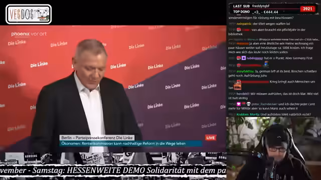 02:42:47Ein Zuschauer berichtet von seiner politischen Sozialisierung durch Stay-Videos und den Stream und fragt nach Empfehlungen für politisches Engagement. Die Antwort diversifiziert die Möglichkeiten, betont aber den Beitritt zu einer kommunistischen Organisation. Im Anschluss wird eine geplante Pressekonferenz mit Jan van Aken angekündigt, welche sich mit Themen wie Aufrüstung, Wehrtüchtigkeit und dem Frieden in der Ukraine befassen soll.
