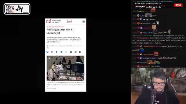 03:32:26Der Streamer thematisiert zunehmend die Bedrohung der Meinungsfreiheit durch die EU. Er kritisiert das Sanktionssystem der Union, das Personen ohne rechtsstaatliches Verfahren zu 'Persona non grata' erklären und damit deren wirtschaftliche Existenz vernichten kann. Als Beispiel wird der Fall des Sängers Jacques Bots genannt, der nach eigener Aussage ohne konkreten Beweis für die Verbreitung russischer Propaganda sanktioniert wurde. Der Streamer sieht dies als willkürliche Einschüchterung und einen Angriff auf demokratische Grundwerte.