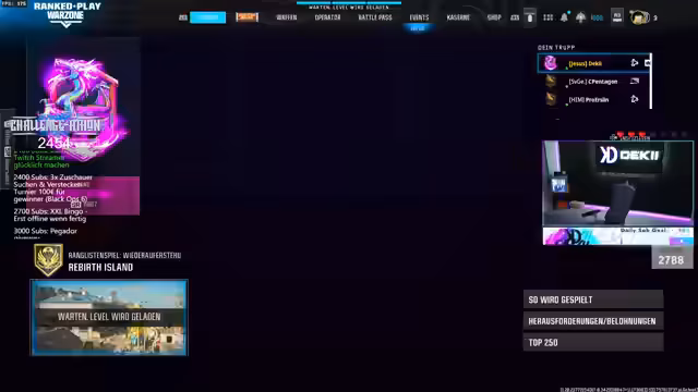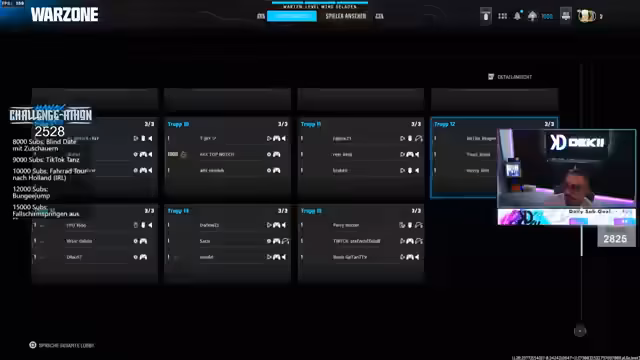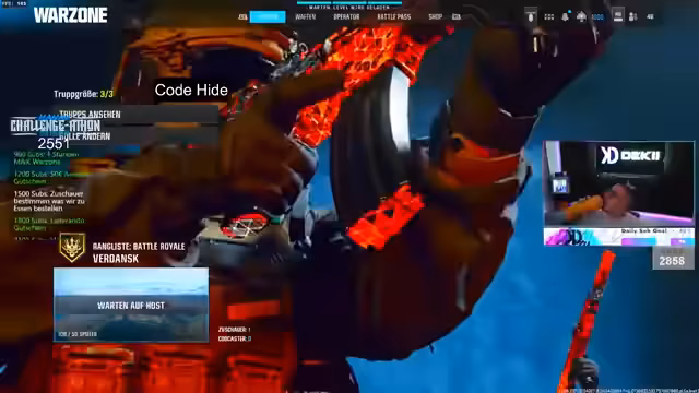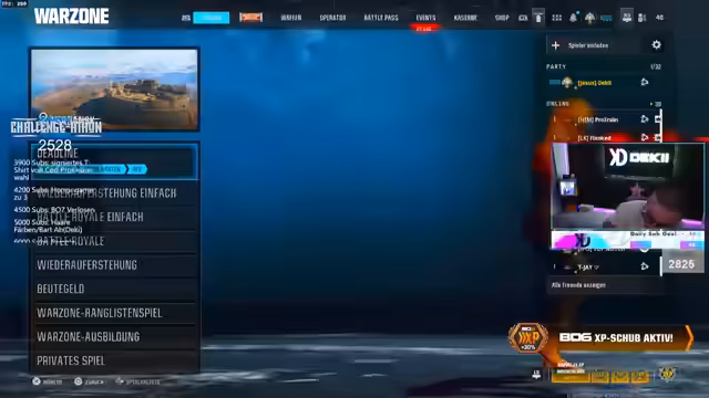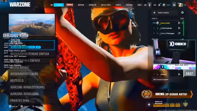 Warzone-Action pur: Ranked-Spiele mit Erzin und Can, gefolgt von Community-Turnier im 'Suchen und Verstecken' um 18 Uhr. Der Abend endet mit einem W2W-Scream um 20 Uhr. Zudem: Diskussion über Subscriber-Zahlen und Ankündigung einer Liegestütz-Challenge bei neuen Subs. Planung für XXL-Bingo am Sonntag steht an.