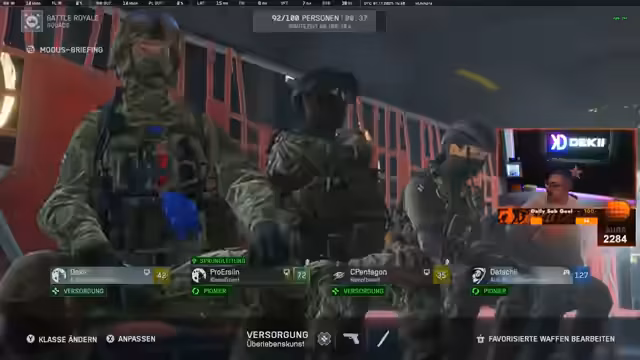 01:40:22Die Spieler äußern ihren Frust über Panzer im Spiel, die als 'größtem Müll' und 'größtem Opfer' bezeichnet werden, da sie das Spielgeschehen dominieren und nervig sind. Ein Spieler schlägt vor, eine LMG-Klasse zu erstellen, um besser gegen Panzer vorgehen zu können, beklagt aber das Fehlen von Aufsätzen. Es wird diskutiert, ob man ganz aus der Lobby oder nur aus der Party gehen muss, um Klassen zu priorisieren. Die Frage nach der Streaming-Qualität auf OBS und Twitch kommt auf, insbesondere ob man höher als 1080p streamen kann. Ein Spieler äußert den Wunsch nach einer KTS-Waffe und würde dafür 'seinen Arsch verkaufen'. Die Spieler diskutieren über die Teilnahme an Turnieren, wobei ein Spieler kein Interesse an COD-Turnieren hat, aber für ein Battlefield-Turnier oder Warzone Customs offen wäre. Es wird erwähnt, dass es jetzt Custom Games in Battlefield gibt, was die Möglichkeit für interne Turniere eröffnet.