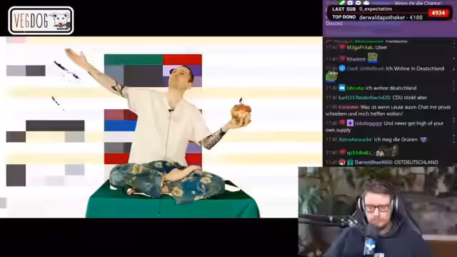 00:33:52Der Streamer thematisiert die Komplexität des Nahostkonflikts und äußert sich ungerne dazu, da er sich nicht ausreichend informiert fühlt. Er kritisiert scharf die Unternehmenspolitik von Koro, die den Streamer Neider nach dessen Aussage „Fuck Israel“ entließ. Er unterstellt dem Unternehmen, rückgratlos zu sein, da es nur dann reagiere, wenn E-Mails Druck ausüben, und sich nicht aus moralischer Überzeugung, sondern aus kommerziellem Kalkül positioniere, da tote Palästinenser keine Nüsse kaufen würden.