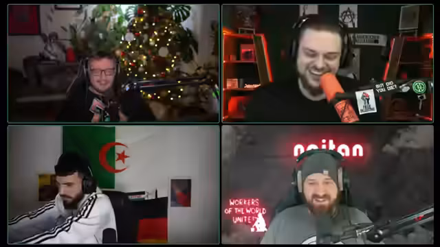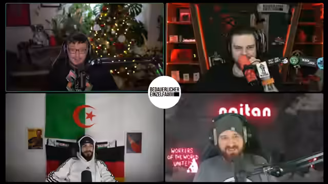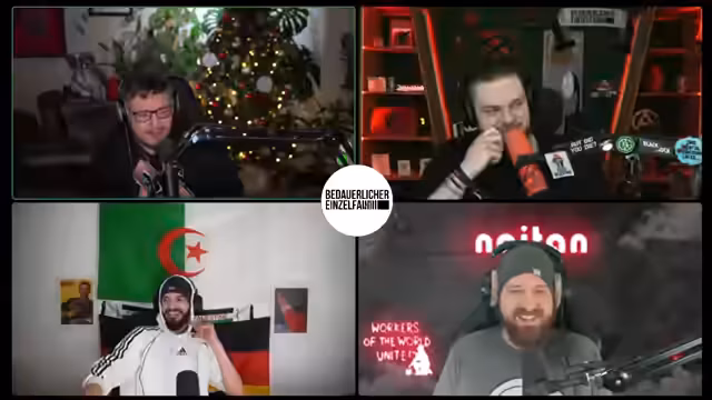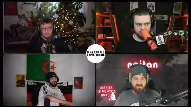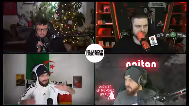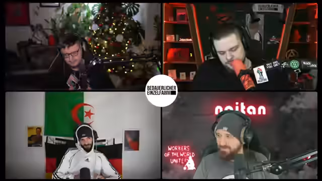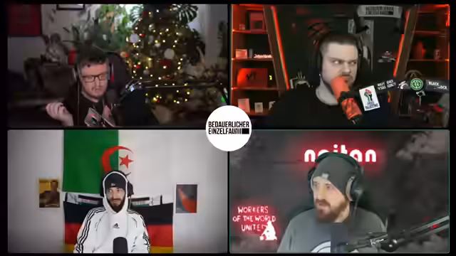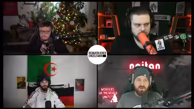 00:25:03Der Stream beginnt mit einer propagandistischen Ankündigung, die eine rote Sonne im Kampf gegen den Kapitalismus und für die Arbeiterklasse preist. Der Sprecher greift marxistische und maoistische Ideologien auf, verweist auf die Mercedes-Limousine als Symbol der Konterrevolutionäre und erwähnt den angeblichen Auftritt von Mao Zedong, der Feinde erschieße. Diese Einleitung etabliert eine stark linksradikale, antikapitalistische und antiimperialistische Grundstimmung für die folgende Diskussion.