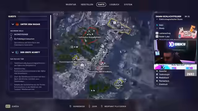 06:38:19Zu Beginn der Runde treten technische Probleme mit dem Spiel auf, darunter ein Gamecrash und Schwierigkeiten, den richtigen Loot zu finden. Der Streamer und sein Partner besprechen, wo sie essentielle Industrie-Akkus und andere Bauteile in der Map finden können, um ihre Basis zu verbessern. Sie debattieren über zufällige Spawn-Punkte von Gegenständen und versuchen, sich auf eine strategische Vorbereitung für die bevorstehenden PvP-Begegnungen zu konzentrieren, während sie sich über die Herausforderungen im Spiel austauschen.