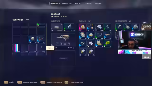 07:37:48Sie starten eine neue Runde und besprechen sofort optimierte Spawn-Punkte und zukünftige Strategien. Der Streamer erwähnt die 'Falle' von Loot-gamblig – die Sucht, immer nur auf den nächsten wertvollen Loot-Beute zu hoffen – und zieht einen Vergleich zu Glücksspielautomaten. Parallel dazu planen sie die Aufgabe, bestimmte Energiedinge und Gegner zu bekämpfen. Die Runde zeigt wiederholt Herausforderungen durch Bugs, darunter Schwierigkeiten mit der Sprint-Taste und dem Inventar, was die Playability beeinträchtigt.