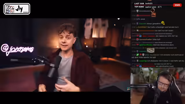 00:18:50Der Stream beginnt mit persönlichen Mitteilungen, darunter die Nachricht, dass der Streamer seit einem Jahr vegan ist und für Satisfyer arbeitet. Es folgen humorvolle Werbeideen für die Marke 'Gottlos auf Mutter', insbesondere für Unterwäsche und eine potenzielle Kollektion. Der Streamer pitcht zudem Konzepte wie 'gottlos für Mütter, die feministische Linie' und 'Gottlos aufs Kapital', wobei er seine Rolle als 'Kommi' kritisch hinterfragt, der in Unternehmensgesprächen wahrscheinlich Gewerkschaftsthemen ansprechen würde.