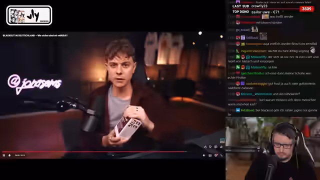 00:35:41Der Streamer fragt nach dem Befinden des Chats und berichtet von einer frustrierenden Schulstunde über Kapitalismus, in der die Frage aufgeworfen wurde, ob man als Chef den Mindestlohn oder den Kündigungsschutz wählen würde. Er zeigt sich verwundert über das geringe Klassenbewusstsein in der Schulklasse und stellt die These auf, dass Schüler und Schülerinnen kaum Zugang zu solchen Konzepten hätten, außer sie seien Zuschauer auf Twitch. Er bezieht sich auch auf kontroverse Themen wie die 'Epstein-Fights' und die zunehmenden Vorwürfe des Antisemitismus, die er als repressives Mittel der 'Quarknasen' kritisiert.