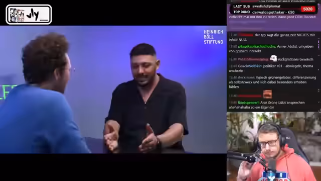 03:29:24Der Stream beginnt mit einer intensiven Diskussion über die Asylpolitik in Deutschland. Der Sprecher zitiert einen Befragten, der die neuen Grenzkontrollen des CSU-Innenministers Dobrindt befürwortet, kritisiert aber auch die geringe Wirksamkeit, da nur 2,1 Prozent der Asylgesuche abgelehnt wurden. Es finden kontroverse Gespräche über die "Asylwende" der CDU statt, wobei viele Befragte der Meinung sind, die Partei könne und werde das Problem der illegalen Migration nicht lösen. Mehrere Kommentare im Stream fordern die Wahl der AfD, was auf eine stark polarisierte Öffentlichkeit hindeutet. Ein Nutzer beschreibt die politische Lage mit den Worten, dass es "eingerissen" sei und "deswegen übervölkert" sei, was eine tiefe Skepsis gegenüber den Regierungsparteien zeigt.