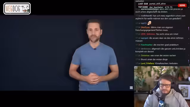 04:01:47Eine unerwartete und intensive Debatte über die vegane Ernährung für Hunde entsteht. Der Streamer, der von seiner positiven Erfahrung mit veganen Hunden berichtet, wirbt vehement für die gesundheitlichen Vorteile und bezeichnet reine Fleischernährung als ungesund und moralisch fragwürdig. Er konfrontiert Kritiker wissenschaftlich, verweist auf Studien und stellt selbstbewusst sein Expertenwissen in der Kynologie unter Beweis, während er seine Gegner als überfordert und von der Fleischlobby beeinflusst darstellt.