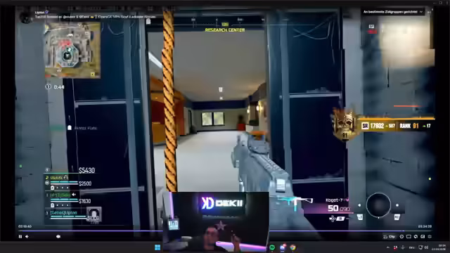 04:09:28Der Streamer konzentriert sich auf den Ranglisten-Grind und nutzt dabei die M8 und die neue RefMP MCM. Er analysiert sein Gameplay eingehend, insbesondere bei knappen Siegen und Niederlagen, wobei er Fehler wie zu langsames Reagieren und ungenaues Zielen benennt. Dabei diskutiert er auch das Thema Cheating, wobei er denkt, dass nicht jeder Spieler cheaten würde und der Anti-Cheat gut funktionieren würde. Er zeigt weiterhin spezifische Spielsituationen, in denen er versucht, durch kluges Positionieren und Vorteilnahme zu punkten.