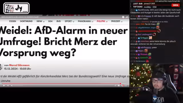 04:10:48Der Streamer äußert sich auch zur Ampel-Koalition und sieht sie als gescheitert an. Er überraschend erwähnt Robert Habeck, den er teilweise verteidigt, da dessen hilfreiche Forderungen angeblich vom Finanzministerium blockiert wurden. Dennoch sieht er eine zukünftige Regierung mit Merz als ähnliches Chaos an und warnt vor einer "neuen Ampel", die wirtschaftliche Probleme und Inflation weiter verschärfen würde.