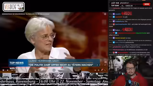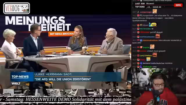 00:50:18Die Sendung 'Meinungsfreiheit mit Nena Brockhaus' wird kritisch analysiert. Der Streamer äußert sich als großer Fan der Meinungsfreiheit und sieht das Format als genau richtig für sich an. Die erste Episode der Sendung beginnt mit der These, dass Steinmeiers Rede entsetzt oder gut gefunden wurde, wobei die Gastgeberin zu den Entsetzten gehört. Es wird kritisiert, dass dies keine These sei, sondern eine Umdeutung von Tatsachen. Die Gäste der Sendung sind die Taz-Journalistin Ulrike Herrmann, CDU-Generalsekretär Carsten Lindbergh und der Publizist Henrik Broder. Steinmeiers Rede vom 9. November, in der er indirekt ein Verbotsverfahren gegen die AfD andeutete, wird als skandalös und spaltend empfunden. Die Rolle des Bundespräsidenten, der sich nicht in die aktuelle Politik einmischen sollte, wird hinterfragt. Die Diskussion dreht sich auch um die Brandmauer zur AfD und die Frage, ob eine Zusammenarbeit mit dieser Partei möglich ist, insbesondere im Hinblick auf Landtagswahlen, wo die AfD hohe Umfragewerte erzielt.