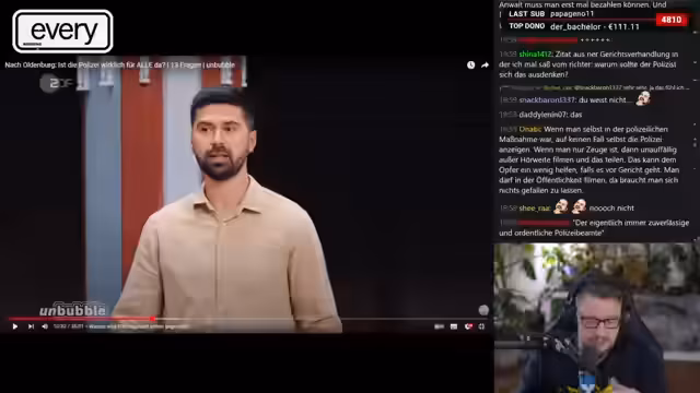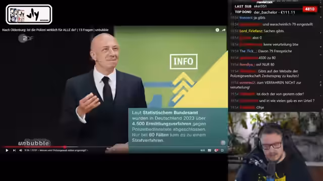 03:30:38Das Thema des Streams wechselt abrupt zu einem schweren Vorfall in Oldenburg, bei dem ein 21-jähriger Mann von einem Polizisten erschossen wurde. Der Streamer stellt die Vertrauenskrise in die Polizei in den Raum und verweist auf wiederholte Kritik an Machtmissbrauch, illegitimer Gewalt und Racial Profiling. Er positioniert sich selbst skeptisch gegenüber der Polizei, da er im eigenen Beruf tagtäglich erlebt, was schief läuft, und fordert mehr Selbstreflexion innerhalb des Systems, um das Vertrauen in den Rechtsstaat wiederherzustellen.