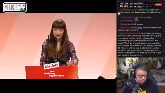 00:33:27Der Streamer kritisiert scharf die Partei Die Linke, insbesondere für ihre Positionierung im Nahostkonflikt. Er wirft ihr vor, sich nicht ausreichend für Palästina einzusetzen und stattdessen eine pro-israelische Linie zu fahren. Er spottet über Dietmar Bartsch, der laut der Moderation eine Rede mit einem in seinem Kontext falschen Zitat von Rosa Luxembug gehalten hat, und dessen angebliche Verärgerung darüber.