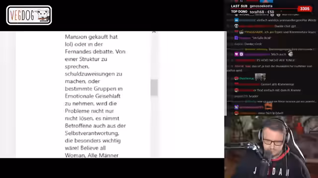 04:00:57Der Streamer kritisiert scharf die pauschale Verallgemeinerung im Fall Ulmen, die alle Männer zu Tätern erklärt und dies als systemische Problematik darstellt. Er argumentiert, dass solche androgynen Positionen der Hufeisentheorie Vorschub leisten und dass es sich hierbei um klassenspalterischen Kindergartenliberalismus handelt. Während er individuelle Täter verurteilt, wird er dem dargestellten System, das aus linken und rechten Radikalen besteht, nicht zugestimmt. Stattdessen wird die Unschuldsvermutung als Rechtsprinzip verteidigt.
