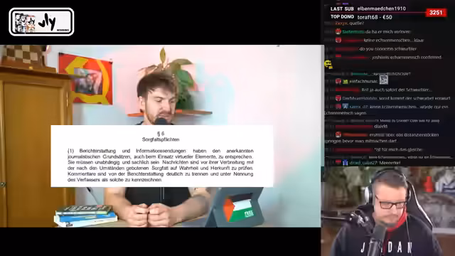 03:28:38Der Streamer wirbt für die Spendenaktion '400 für Habeck', um seine Arbeitszeit der politischen Arbeit widmen zu können, und nimmt für die Aktion 'März gegen März' der Tafel und sanktionsfrei Werbung entgegen. Hauptthema ist der öffentlichkeitswirksame Fall von Colleen Fernandes und Christian Ulmen, der deepfake-artige Nacktbilder verbreitete. Dieser Fall wird genutzt, um eine kritische Haltung gegenüber einer geplanten digitalen Identifikationspflicht im Netz zu vertreten, um totalitäre Überwachungsstrukturen zu vermeiden.