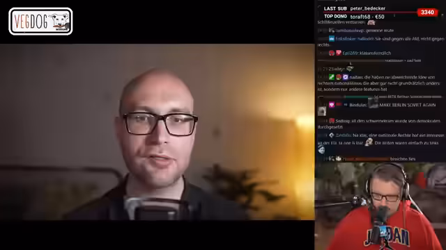 02:13:51Der Stream beinhaltet eine kritische Auseinandersetzung mit dem deutschen Nationalismus, der nicht nur als offene Hetze, sondern viel subtiler auftreten kann. Nationalismus manifestiert sich bereits dort, wo Politik primär im Interesse des Nationalstaats betrieben wird. Der Fehler am Nationalismus liege nicht daran, dass Menschen sich für eine größere Sache interessieren, sondern dass diese größere Sache – der Nationalstaat – das Problem sei. Der Nationalismus basiere auf der falschen Annahme, dass der Erfolg des Staates automatisch auch der Erfolg des Einzelnen sei, obwohl die staatliche Ordnung primär auf die Organisation einer Klassengesellschaft ausgerichtet sei.