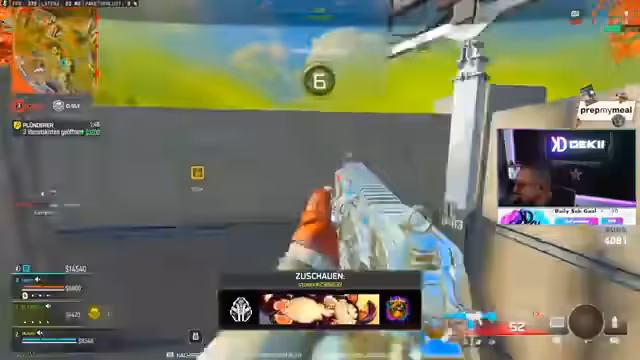 01:47:41Ein großer Teil des Streams besteht aus intensiven Kämpfen im Spiel. Der Streamer und sein Team befinden sich häufig im Endgame, kämpfen um Platzierungen und looten aktiv. Es wird über verschiedene Landespots, wie z.B. einen Brückenbereich, diskutiert und strategische Züge wie das Nutzen von "Luft" (Luftbrücke) sind entscheidend. Der Chat wird aktiv in die Lage einbezogen, indem er um Tipps und Analysen gebeten wird. Die Kommunikation ist schnelllebig und auf die laufenden Kampfhandlungen ausgerichtet, wobei der Streamer oft über gegnerische Positionen und seine eigenen Todesfälle spricht.