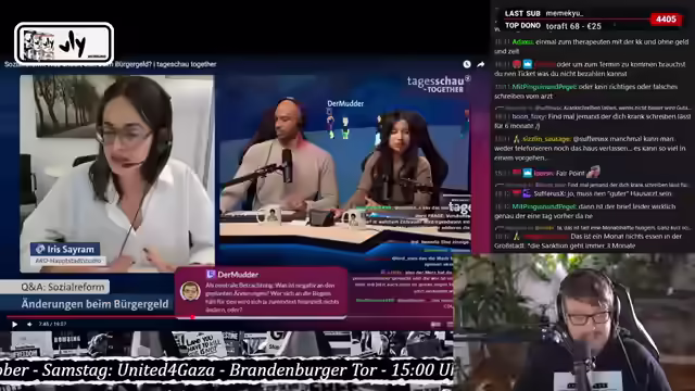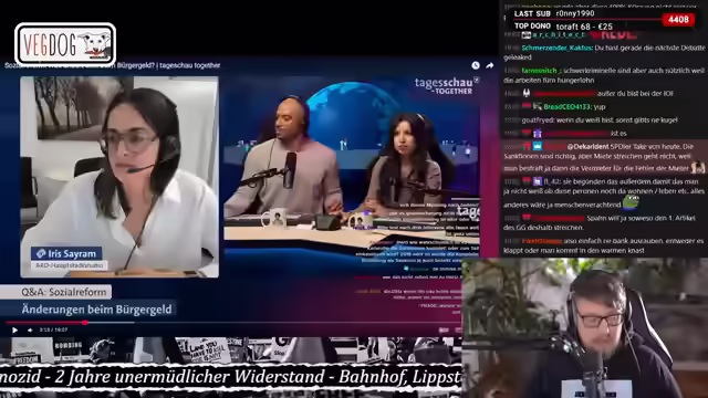 00:41:22Es wird das neue Bastemarks-Video erwähnt und angekündigt, dass das Hassan-Abi-Thema nicht im Fokus stehen wird. Der Streamer distanziert sich von Hassan Abis Einsatz von Schockhalsbändern und dessen Positionen zu Sexwork und Tierrechten, betont aber, dass man in einigen Bereichen übereinstimmen kann, auch wenn man eine Person insgesamt kritisch sieht. Er kritisiert die Scheinheiligkeit derer, die Hassan Abi wegen des Halsbands kritisieren, aber selbst Fleisch essen und Völkermord verteidigen. Der Streamer kündigt an, sich mit den ARD-Kollegen auf Twitch die neue Sozialreform beim Bürgergeld anzuschauen und kritisiert die SPD für die Verschärfungen beim Bürgergeld. Es wird ein Gespräch mit Iris Seiram geführt, einer Korrespondentin, die Einblicke in die geplanten Änderungen gibt. Die wichtigste Änderung sei, dass Menschen im Bürgergeldbezug ihre Termine wahrnehmen müssen, da sonst das Bürgergeld gestrichen werden kann.