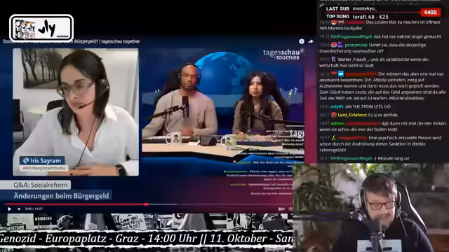 00:46:58Ein zentrales Thema des Streams ist die geplante Reform des Bürgergeldes in Deutschland, insbesondere die verschärften Regeln für Leistungsempfänger. Der Streamer diskutiert diese Reform kritisch und vergleicht sie mit einer 'Todesstrafe für arme Menschen'. Es wird eine Analyse der politischen Motive hinter dieser Reform angestellt, wobei die SPD als treibende Kraft kritisiert wird. Gleichzeitig wird die Möglichkeit einer verfassungsrechtlichen Überprüfung der neuen Regeln thematisiert, da diese möglicherweise gegen Grundrechte verstoßen.