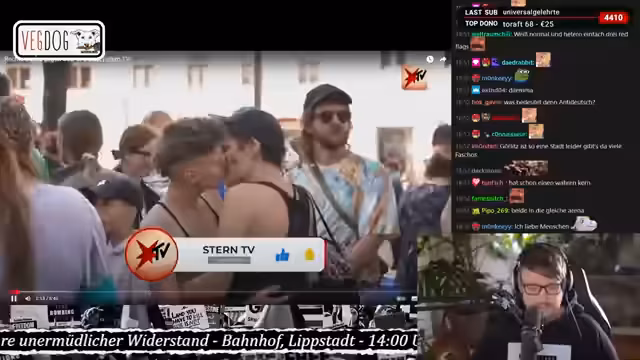01:38:42主播 berichtet über eine Demonstration in Görlitz, bei der etwa 130 Rechtsextremisten gegen einen Christopher Street Day (CSD) protestierten. Währenddessen feierten über 800 Menschen den CSD unter dem Motto Akzeptanz, Liebe und Freiheit.主播 kritisiert, dass die CSD-Demonstranten in einem von Deutschland mitfinanzierten Völkermord eingebunden sind, was als peinlich bezeichnet wird. Die politischen Haltungen beider Seiten werden analysiert und als identitär gegenübergestellt.