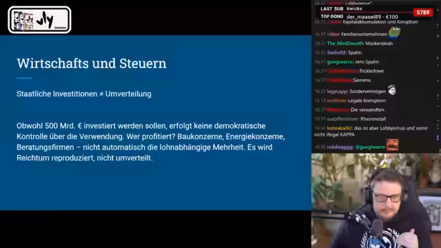 01:33:15Es wird kritisiert, dass ungebildete Influencer Werbung für die Bundeswehr machen und ihre Zuschauerschaft auffordern, für das Land zu sterben. Dies wird als Klassenverrat und moralische Verkommenheit dargestellt, da diese Influencer von ihren Zuschauern finanziert werden und diese nun in den Krieg schicken. Die Erhöhung der Verteidigungsausgaben, einschließlich der Bezahlung von Influencern, wird ebenfalls kritisiert. Der Fokus liegt auf militärischem Etatismus, bei dem der Staat planwirtschaftlich in die Rüstungsindustrie eingreift, was durch Blankoschecks und Sondervermögen für Rüstungsprojekte ermöglicht wird. Dies wird als Kriegsvorbereitung gesehen, bei der die Bevölkerung auf einen Krieg vorbereitet wird, um deutsche Kapitalinteressen notfalls mit Gewalt durchzusetzen. Die Absurdität atomarer Aufrüstung im Jahr 2025 wird hervorgehoben, zusammen mit der Kritik, dass die Digitalisierung im Koalitionsvertrag nur im staatlichen Interesse und zur Kontrolle von armutsbetroffenen Menschen erfolgt.