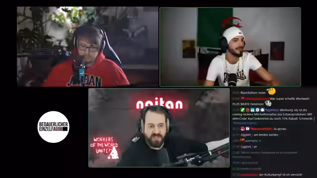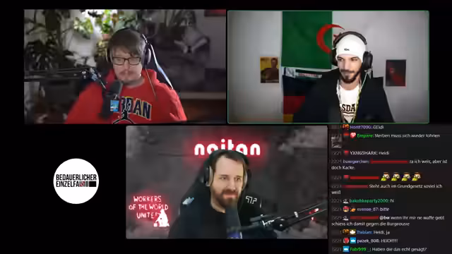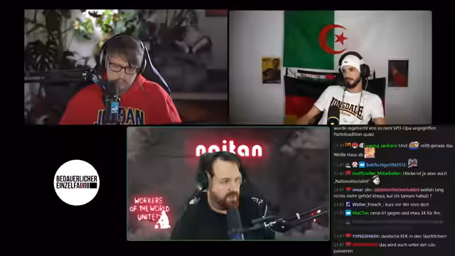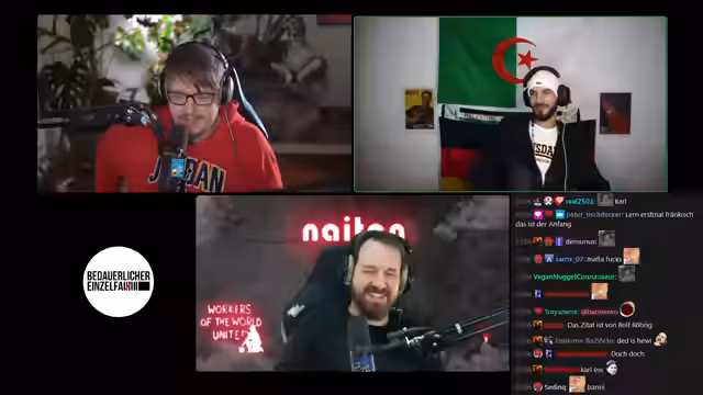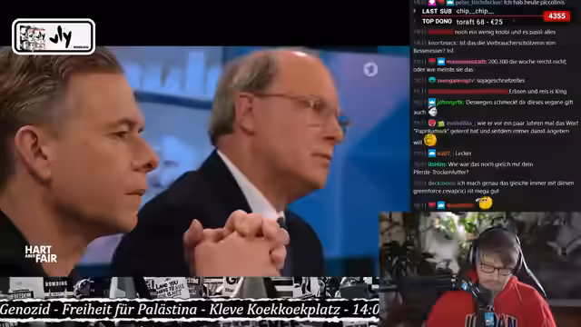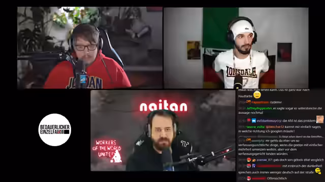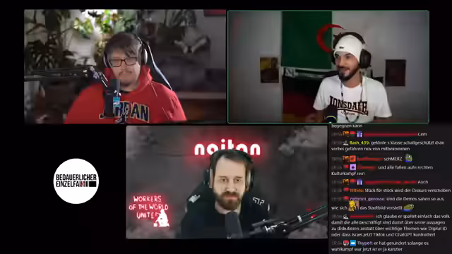 03:20:04Es wird eine öffentlich-rechtliche Sendung kritisiert, die über eine Stunde lang die Frage einer Migranten-Obergrenze in Schulklassen diskutierte, was als '1, 2 oder 3 für rechte Boomer' bezeichnet wird. Eine weitere Sendung, 'Die 100', wird erwähnt, in der ein Teilnehmer, der die Wehrpflicht für die NATO in Frage stellte, stark angefeindet wurde. Es wird festgestellt, dass Deutsche besonders sauer werden, wenn man nicht für die NATO sterben will oder die Nationalhymne nicht mitsingt. Eine persönliche Anekdote über die Großmutter des Streamers, die in Tunesien die alte deutsche Nationalhymne sang, wird erzählt. Die Diskussion führt zu weiteren Familiengeschichten: Die Oma väterlicherseits war Sinti und Roma, deren Eltern im KZ starben, und wurde von seinem Opa gerettet. Die mütterliche Seite der Familie hatte jedoch Verbindungen zur SS, was zu einer kritischen Auseinandersetzung mit der deutschen Geschichte und der Entnazifizierung führt.