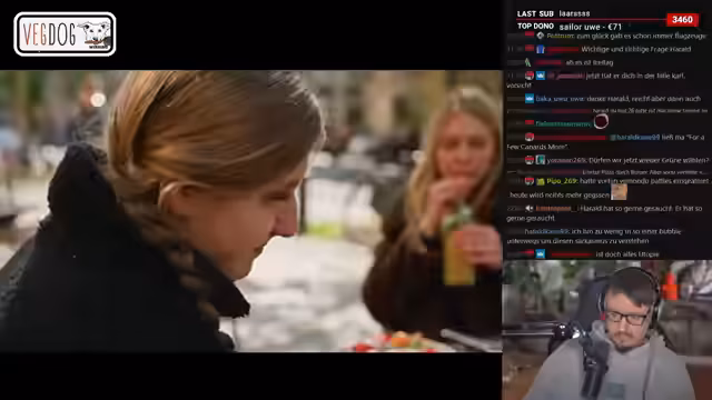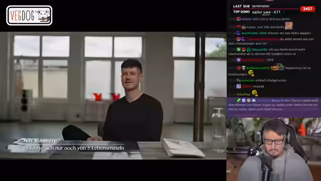 03:34:25Die Zwillingsgeschwister führen einen emotionalen Videocall während Annabelle auf dem Kreuzfahrtschiff ist. Maria gibt zu, sie habe Angst, dass sich ihre Schwester durch die Trennung zu sehr verändert und sie sich nicht mehr harmonieren werden. Gleichzeitig greift der Stream in eine politisch ideologische Debatte ein, die sich um Stalinismus und Kommunismus dreht. Moderator und Zuschauer diskutieren über die Bewertung historischer Figuren und die materialistischen Verhältnisse, wobei die Unterhaltung zunehmend polemisch wird und die eigentliche Thematik der Ernährung in den Hintergrund rückt.