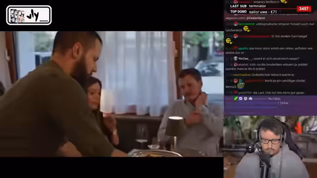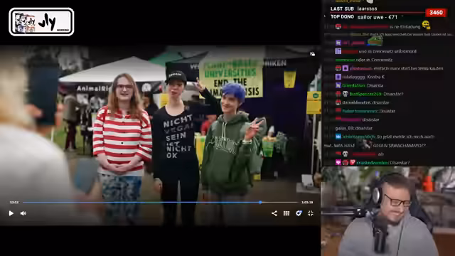 03:49:49Der Streamer stellt den politischen Influencer "Der verrückte Mutmacher" vor. Er beschreibt diesen als linksliberalen Akteur, der im Wahlkampf stark für Robert Habeck war und plant, durch Spenden seinen Lebensunterhalt zu bestreiten, um sich voll der Politik zu widmen. Besonderes Augenmerk liegt auf einem Streit, den der verrückte Mutmacher mit Simon und Ole, den Streamern, hat, insbesondere wegen deren pazifistischer Haltung im Kriegsfall.