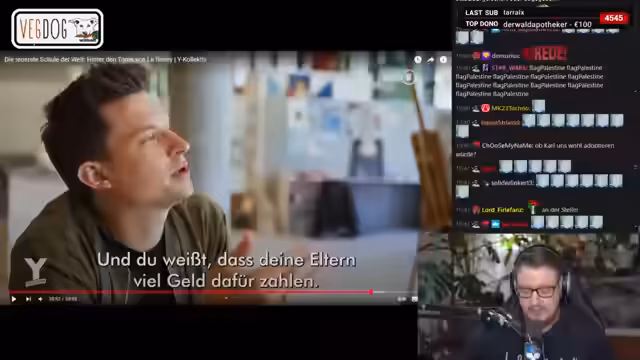 00:32:34Nach einem schnellen Morgenessen beginnt der Stream mit Reflexionen über die Zeit und eine ungewöhnlich früh anberaumte Autofahrt zu einem Ölwechseltermin, was die isolierte Wohnlage des Streamers hervorhebt. Der Fokus verlagert sich auf ein Video über die teuerste Schule der Welt, Le Rosey in der Schweiz. Der Streamer diskutiert den exorbitanten Preis von über 160.000 Euro pro Schuljahr und die damit verbundenen Privilegien wie den Unterricht in Sprachen auf Muttersprachenniveau und die Betreuung durch reiche und einflussreiche Eltern.