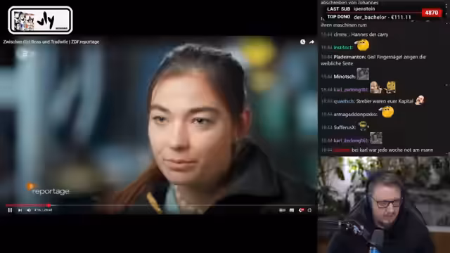 02:36:15Der Stream analysiert zwei gegensätzliche Frauenbilder, die in einer ZDF-Reportage dargestellt werden. Einerseits die Handwerkerin Mara, die durch Social Media mehr Frauen für das Handwerk begeistern möchte und ein Bild starker, selbstbewusster Frau vertritt. Andererseits die sogenannte Trapwife Caro, die auf Mallorca ihr Leben als traditionelle Hausfrau und Partnerin inszeniert und ein positives, fürsorgliches Frauenbild vermitteln möchte. Beide Lebensentwürfe stoßen auf geteilte Meinungen und polarisieren.