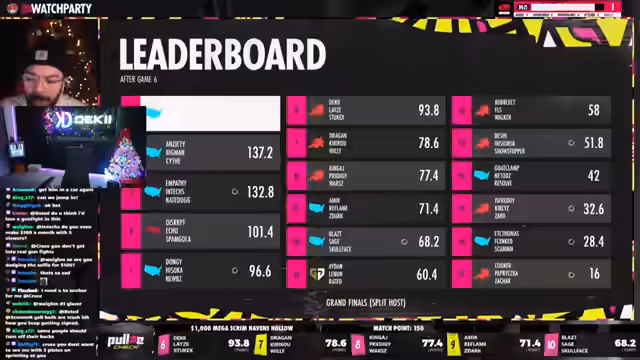 06:28:05Der Stream gibt einen detaillierten Überblick über die Top 5 Teams des Turniers. In fünfter Stelle landete Disrupt Echo Spam Goal mit 101,4 Punkten, gefolgt von Dongy Soka Noobs auf Platz vier mit 131,6 Punkten. Den dritten Rang belegte das Team Empathy, Intex, Nate Dogg mit 132,8 Punkten. Der zweite Platz ging an Anxiety, Big Man und Scythe mit 137,2 Punkten. Der Sieg ging an das Team Allman, Shifty, Smitty, das als erste das Match-Punkte-Target von 159,8 Punkten erreichte.