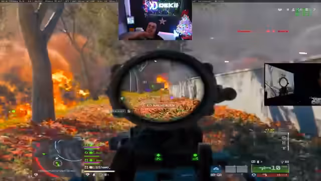 03:43:48Das Team startet eine neue Runde mit Fokus auf Missionen und Panzerjagd. Sie sammeln XP, tauschen Waffen aus und planen Rotationen. Ein Gefecht entbrennt gegen mehrere Gegner; Drohnen und Bomben werden eingesetzt. Ein Panzer nähert sich, wodurch die Positionierung kritisch wird. Das Team versucht, durch koordiniertes Vorgehen und Streak-Nutzung zu überleben, wird jedoch durch den Panzer stark bedrängt.