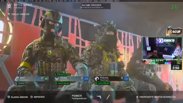 01:13:04Das Team diskutiert die Vorbereitungen für das $1,000,000 Battlefield RedSec Elite Series Turnier. Ein Spieler wird disqualifiziert, weil sein Account nicht verlinkt ist, was zu Frustration führt. Es folgen Diskussionen über die Rollenverteilung im Team, wobei Versorger und Pionier als Positionen genannt werden. Gleichzeitig gibt es technische Probleme mit dem Spielstart, der mehrfach neu gestartet werden muss, während auf die Turnierfreigabe gewartet wird.