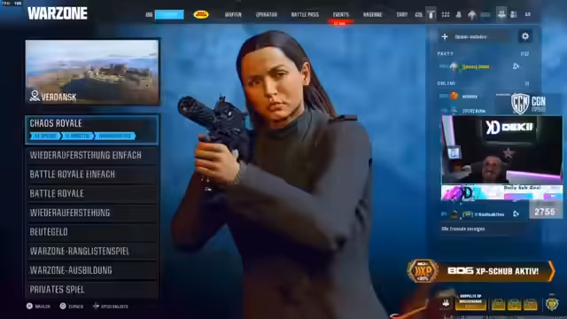 02:42:49Nach dem Landen analysiert der Streamer die Lobby und stellt fest, dass sie in einer relativ leeren Region sind. Immerhin werden mehrere Top-Fragger wie 'Matsrock' und 'Shifty' erwähnt, die in anderen Lobbys spielen. Die Teilnehmer diskutieren die aktuelle Meta und stellen fest, dass viele Spieler mit der FFAR-Waffe auf Long Range extrem erfolgreich sind. Dies wird als 'crazy' eingestuft. Es gibt auch eine Diskussion über ein mögliches Warzone-Bug, bei dem keine Waffen aus blauen Kisten erscheinen könnten.